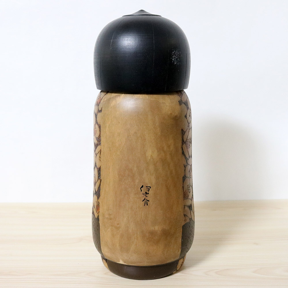 He was born in 1931 in Gunma prefecture and won multiple awards for his kokeshi dolls throughout his life, including winning the prestigious Prime Minister award in 1979. His dolls are usually tall and elegant featuring natural wood colors combined colorful kimonos.