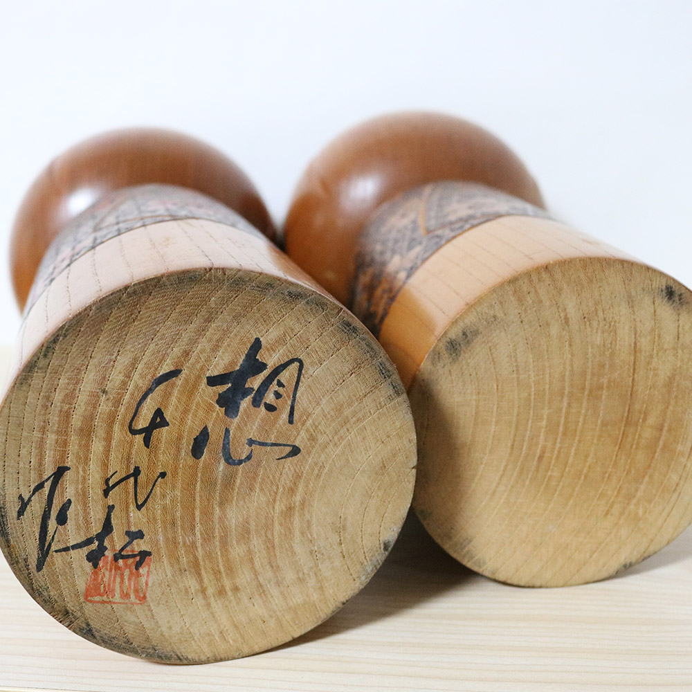 Kano Chiyomatsu began making kokeshi dolls in 1953, one of the most decorated and prized masters in Japan. He already passed away though the exact year is unknown. He has won the prestigious prime minister award twice and many other awards for his beautiful kokeshi dolls.