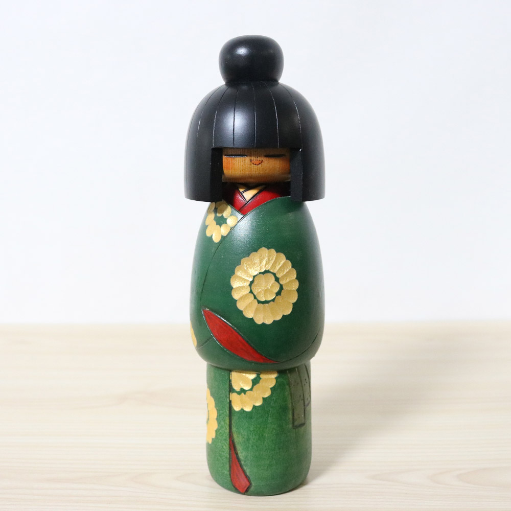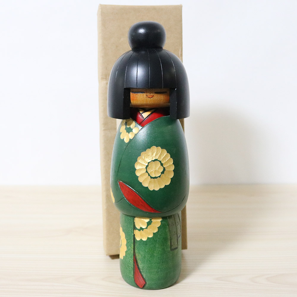 Japanese vintage creative kokeshi doll made by master Kazuo Takamizawa (1927~). Her title is 優雅 (Yuga) which means “Elegant” and “Graceful”.