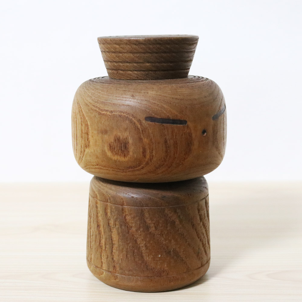 She was made and signed by master Yamanaka Sanpei (1926-2012) who won over 20 awards for his kokeshi dolls including the prestigious “Prime Minister Award” in 1979. Sanpei’s inspiration for kokeshi doll designs often come from children.